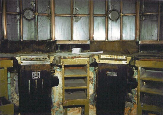 Magnificent plasterwork and ornamental light fixtures adorning the lobby. Below, the interior of the ticket booth.
