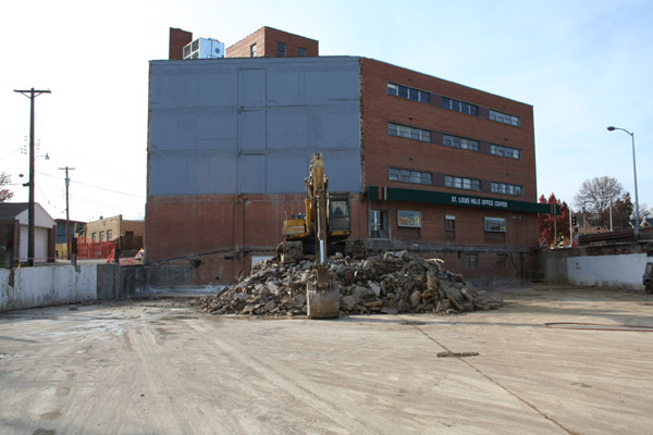 Demolition of the parking structure and offices above was completed in late 2007. The newly-opened space makes for a surreal shift in the atmosphere of the neighborhood.