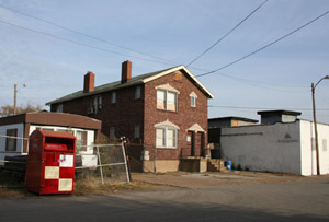 North of downtown, the industrial zones were once freely intermixed with residential neighborhoods. All up and down the northern half of Broadway may be found remnant houses and fragmentary neighborhoods, traces of a time before the Interstate came through, when living close to work was simply the standard of the day, long before zoning mandated separation of uses. The houses range from simple wood frame houses to solid red brick stock, with the same sort of elaborate brickwork and ornament characteristic of older St. Louis neighborhoods. They stand oddly juxtaposed with warehouses, factories, junkyards, empty lots, and loading docks.