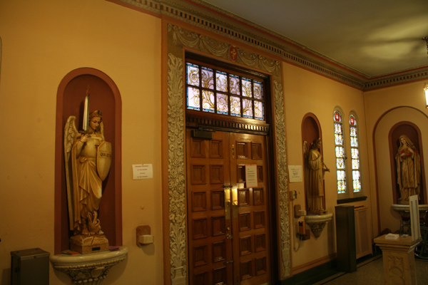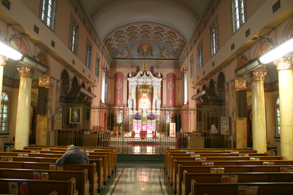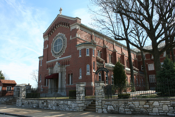 The chapel is open daily, and visitors are welcome. The Chapel is a lovely building with a Gothic brick exterior and Rennaisance interior, built in 1927 on a high bluff site overlooking the now heavily-industrialized Mississippi River valley.