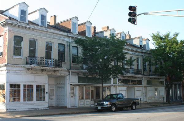 This wonderful row of Romanesque mixed-use buildings stands on Broadway at Steins Street. It was boarded up in 2006, but renovated as housing by 2009.