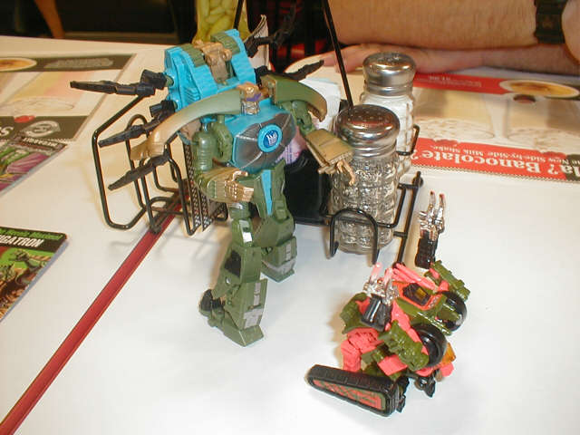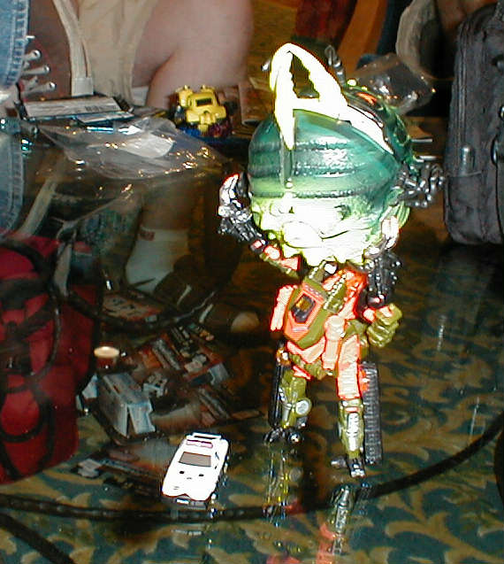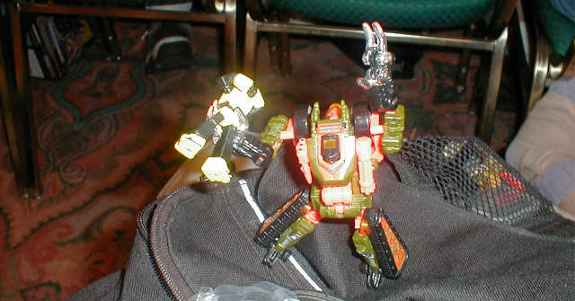 The next morning, even greater perils awaited me at the Transformer gathering -- the Autobot temptress known as Crystal Widow! I was immune to her robo-harlotry, however. I'm tellin' ya, I didn't even look at 'er!