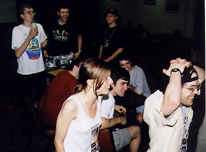 The Friday night gathering. Something must've been funny...