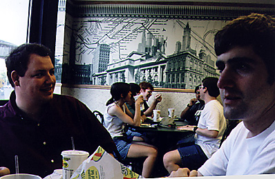 Friday, hanging out at the RiverCenter before pre-registration:Tengu, Tony Fitz, PerceptorTFWW, Picard42, Thylacine 2000