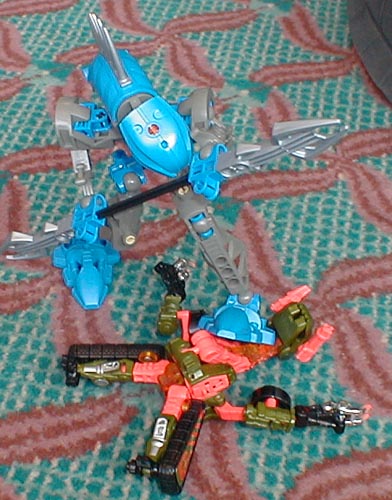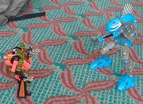 The good (well, evil, actually) General managed to get himself into more trouble while we waited. Seems he met up with some creature from another toy line, one with a big stick: