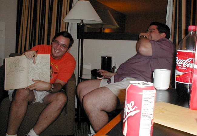 Afterwards I wound up in Hoop & Tim's room that evening, where I had my only drinks of the whole weekend, and where Wang was busily defacing Blue7's old He-Man coloring book.