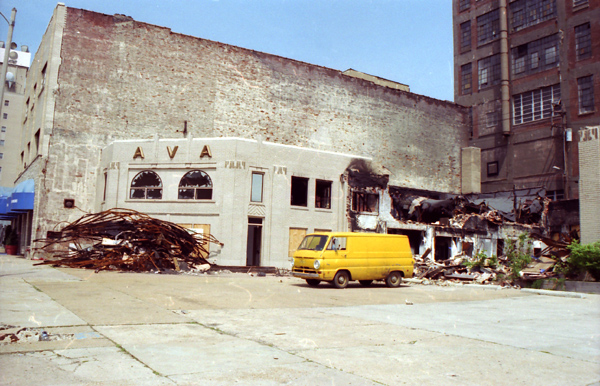 The three-story building next door has also been demolished. The site of both buildings is now a fenced parking lot.