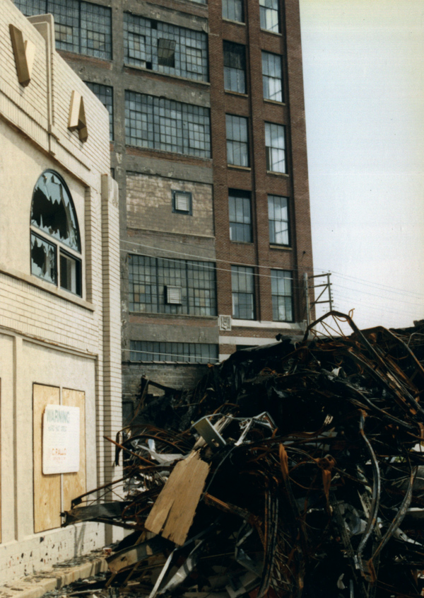After serving as a Sunoco in the 1970s and a Goodrich Silvertown Inc. in the 1980s, the Olive Street garage was largely destroyed by fire in 1996. Demolition crews did the rest.