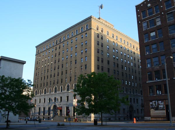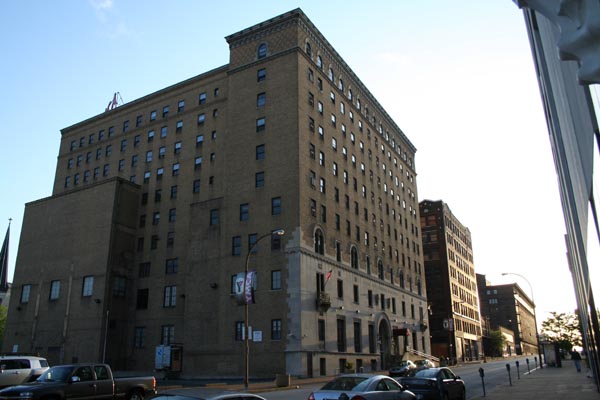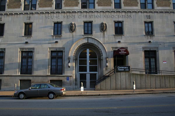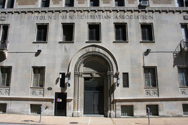 A massive YMCA complex, one of the biggest when it was built; it originally contained 6 floors of dormitories in addition to 2 gyms, a pool, handball courts, lounges and a cafeteria. The upper floors became retirement housing in 1977.