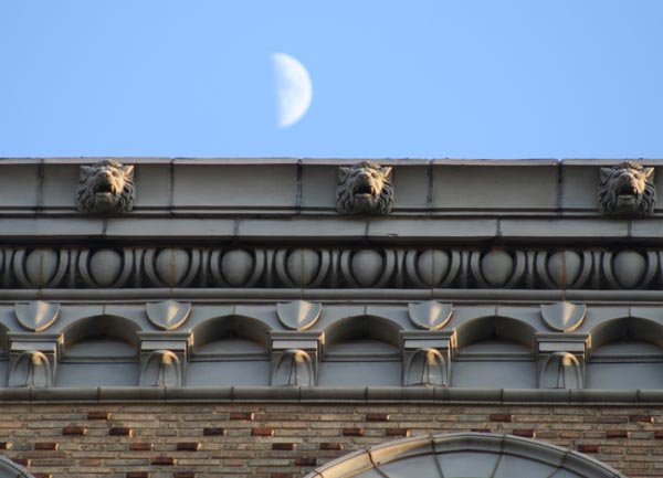 The building is clad in a Renassance style faintly inspired by the palaces of Florence, with a massive, seemingly impenetrable ground floor and smaller rows of windows above.