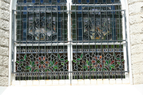The large windows contain stained glass designs that, even from the outside, are stunning in their color and form. I hope to photograph them from the inside in the near future.