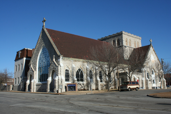 Yet another gray stone Gothic. Unlike several of its neighbors, Jamison Memorial uses a more traditional floor plan with a long sanctuary facing the crossing, which is topped with a low, massive tower.