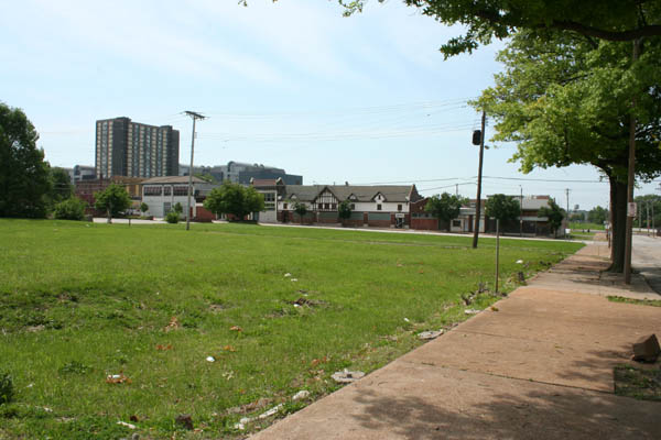 Between T.E. Huntley and N. Garrison, the entire block south of Washington Avenue is vacant, a strange hole in the fabric of a largely intact urban district.