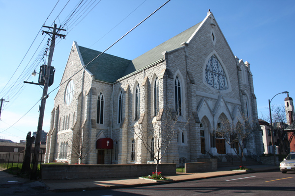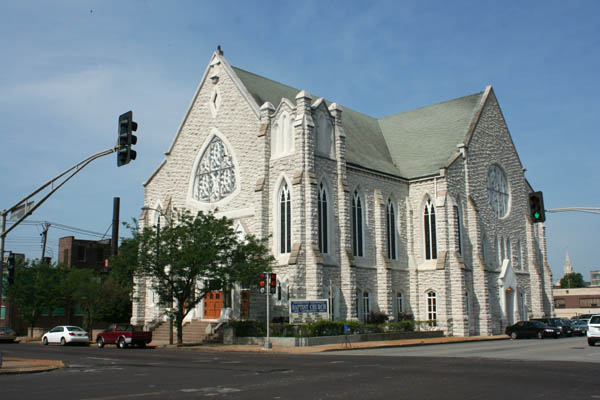 Originally the Washington and Compton Avenue Presbyterian Church, this venerable limestone building passed to the current congregation in 1926 and has served generations of African-American leaders in the city. A 1945 fire nearly destroyed it, but the congregation rallied and rebuilt, rededicating the building in 1948. In 1963, Martin Luther King held a civil rights rally at the church. A healthy crowd was in attendence when I visited in May 2011.