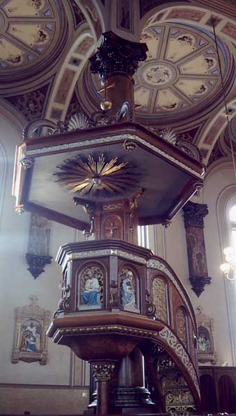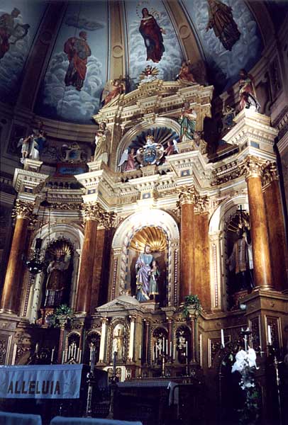 The church's true treasure is the decor of its sanctuary -- at once overwhelming and harmonious. A flurry of colors and shades comes together beautifully; endless stencils and paintings work as a unified ensemble. An enormous guilded alter stands at the end of the nave, erected in thanks for the end of a cholora epidemic. Details of the incident, as well as the building's history and the miracle reported to have occurred there, maybe found on the church's web site.