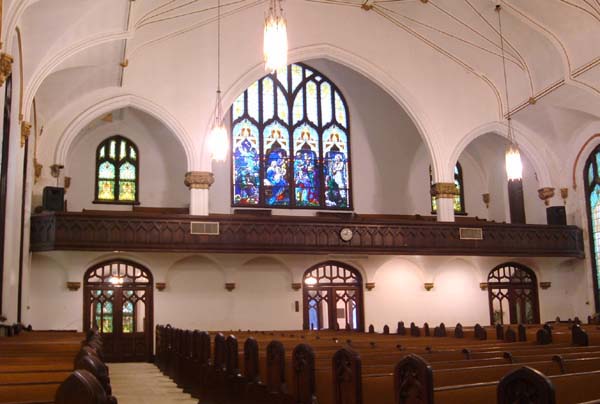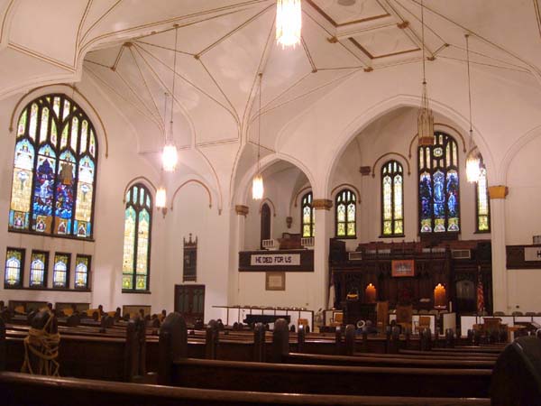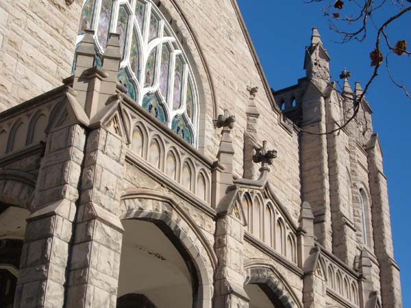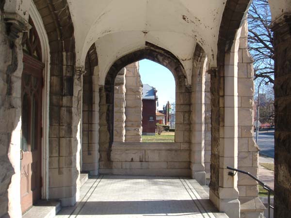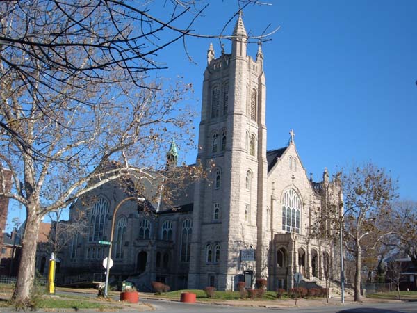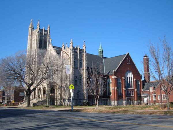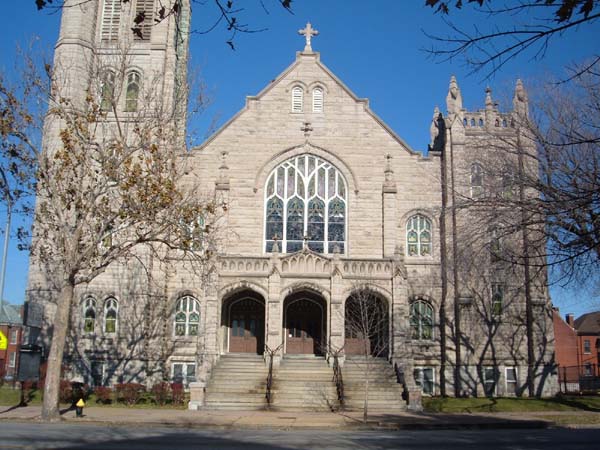 Located on the north side on St. Louis Avenue at Garrison, this French Gothic church features a mostly-white interior with stained glass in earth tones and a spacious, airy sanctuary. The church went up in 1913 as Grace Lutheran; the present congregation took over in 1969. The building is largely unaltered from its original configuration, but is in need of maintenance and repairs, a challenge facing a dimishing congregation.