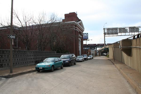 Despite its long history and beautiful interior, St. Mary of Victories is perhaps most notable today for its oppressive and surreal location: directly across the street from an elevated freeway, and surrounded by industrial buildings -- many of which await conversion to residential use, a full-circle turn for this location.