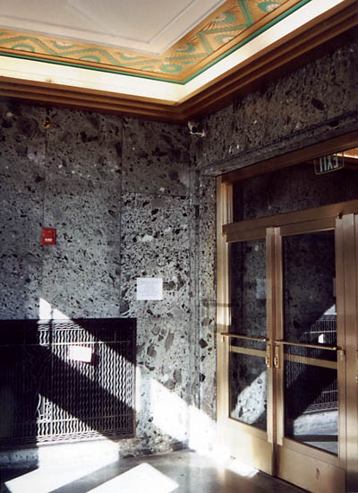 Interior finishes have been meticulously restored or duplicated from what survived. This view of the vestibule can be compared to a photograph of the space just beyond it from 1996. Next Site || More Continental Building > > >