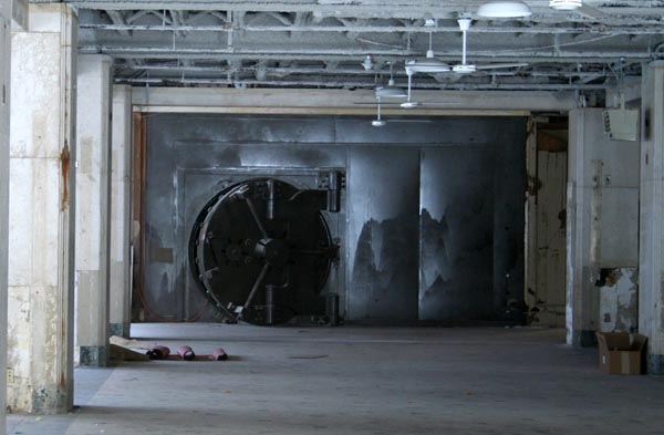 It still looks fantastic, inside and out. The old bank space is still vacant, however, with the bank vault door hanging slackly open.