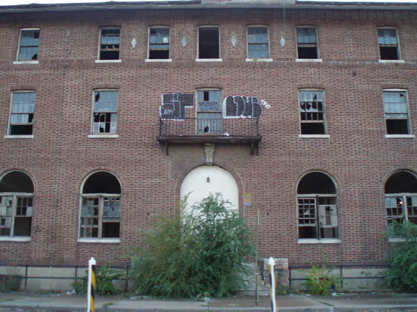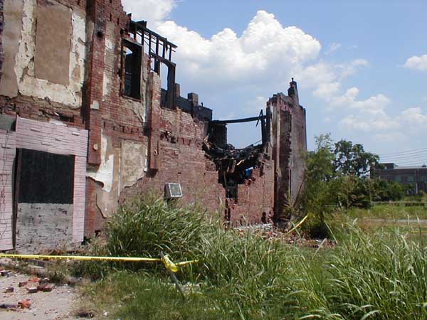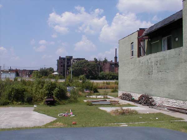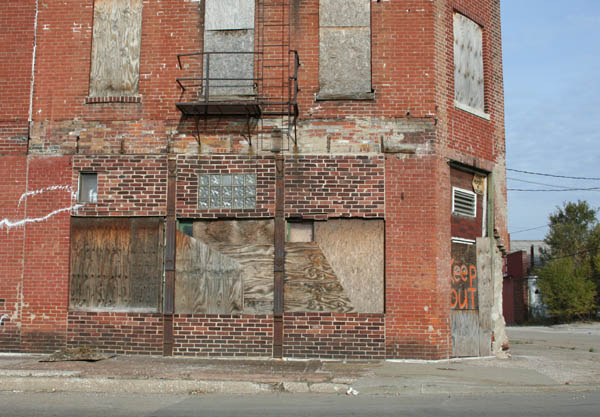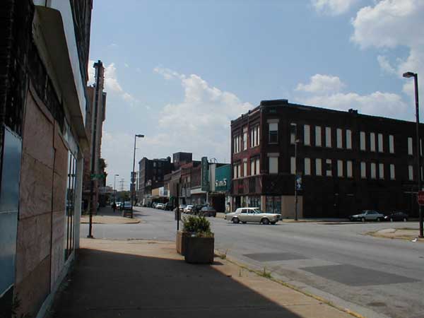 A view looking north towards Collinsville Avenue. Downtown East St. Louis is an astonishingly isolated stretch of urban construction, surrounded by blocks of vacant lots -- a context that has completely vanished.