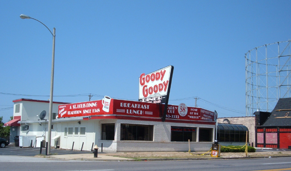 This solitary landmark stands on Natural Bridge near the city limits, just west of Goodfellow; it is sandwiched between industrial areas to the south and residential to the north.