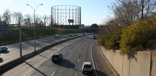 Gasometers (or "gas holder") are common in European cities, but comparatively rare in the United States. These massive tanks rise and fall to maintain pressure in natural gas lines through the city. The gas floats above a base volume of water; as the amount of gas changes, the tank rises and falls. The gasometers were retired in the early 2000s as Laclede Gas switched to underground gas storage, with the tanks permanently lowered out of sight and only the skeletal support framework looming above. Only one gasometer has survived to 2010.