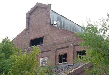 A massive, long-abandoned factory on N. Grand Avenue.