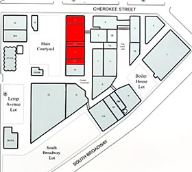 ISCo primarily used the complex for warehouse storage. They left their mark most visibly on the smokestack, but also made sporadic changes, including construction of at least one 1950s building. International Shoe, later InterCo, began leasing space to other companies in the 1960s, and sold the complex in 1992 after gradually abandoning portions of it. Since then, the space has been inhabited piecemeal by various concerns, from artist studios to small industrial companies.