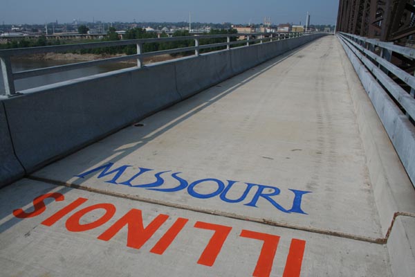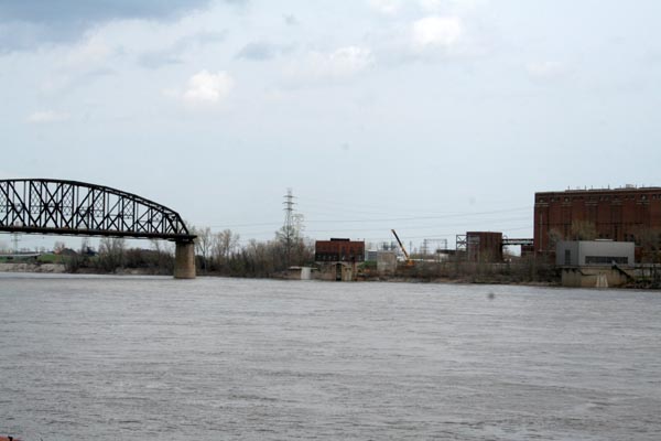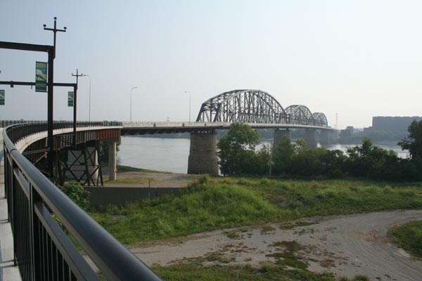 The long-abandoned Missouri-side railroad approaches to the bridge.