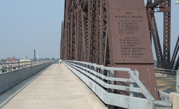 By the 1990s, the roadway was sufficiently deteriorated that crossing the bridge could be a harrowing experience. The bridge was closed in 2001. After standing idle for several years, the McKinley Bridge has been reconditioned and re-opened, with a new car deck and new approach ramps. The outrigger roadway is now a pedestrian and bike path. The restored bridge opened to traffic in 2008.