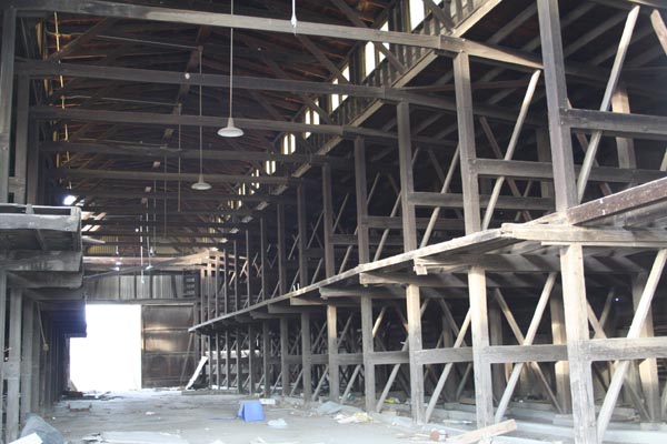 Two ancient shed buildings on Branch Street, near the approaches to the McKinley Bridge.