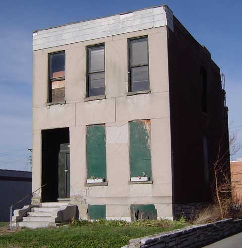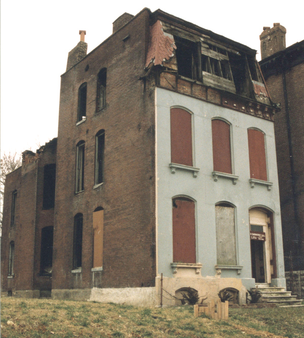 Further west is a stronger indication of the history of the rest of the block. The Meriweather House, a solitary town house, now stands surrounded by vacant lots; it long faced an uncertain future. In 2006, renovation work began.