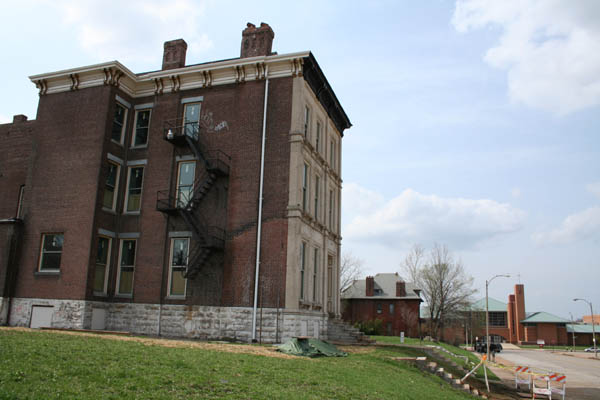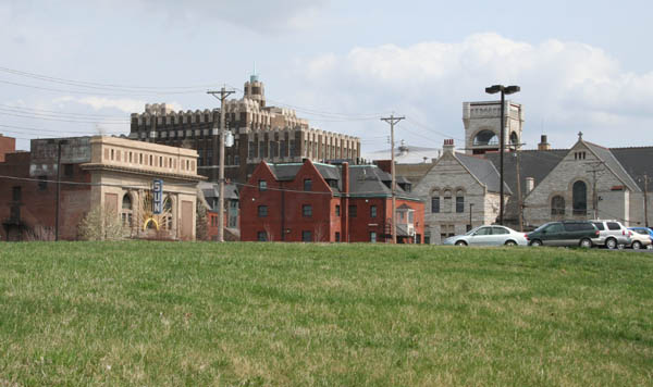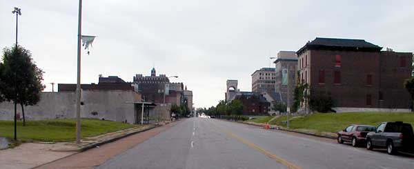 in the distance. The buildings replaced the Vandeventer Place, the most posh and famed of St. Louis's many private gated streets.