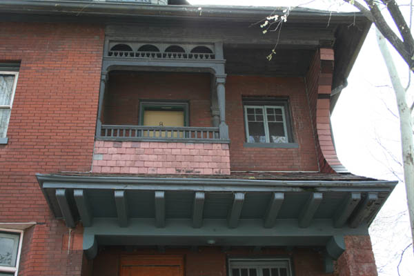 condition. It is cloaked and hidden by trees for much of the year. The curving porch wall is curiosity seen on a number of St. Louis houses.