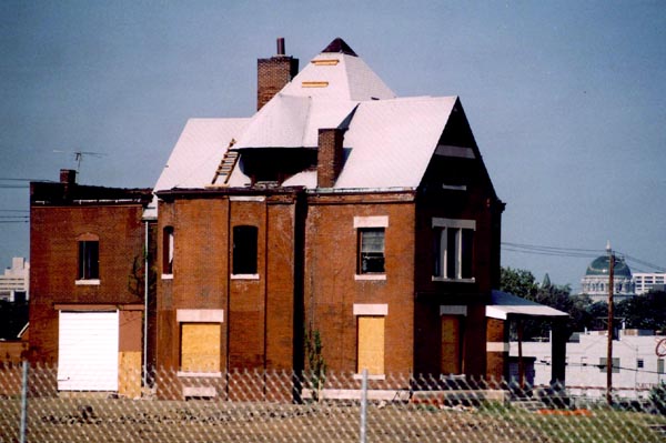 In 2001, construction crews cleared out the last house on this former block in preparation for large-scale construction. An entire block of Delmar Avenue was demolished, and the street itself obliterated. Two other dead-end streets on the north end of the development, Carpenter Place and Clarkson Place, were also destroyed. The two streets had been established as private subdivisions in 1876, meant to echo nearby Vandeventer Place -- itself the pinacle of Victorian elegance in St. Louis.