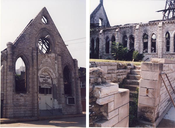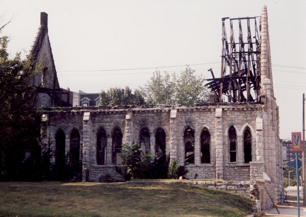 The National Memorial Church of God in Christ, across the street from the Cardinal Ritter site, burned to ruins in early 2001.