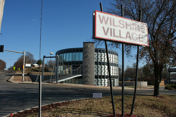 A round bank building, set into the cut-out of a hillside, with a vertical slab accented by stylized stainless steel lettering, wrapped in glass block and accessed from the street corner by its own private suspension bridge. That description alone would make this Mid-Century bank a standout. But for Citizens Savings and Loan (later the Citizens Professional Building), this is only the beginning. The building is loaded up, inside and out, with spectacular 1960s detailing.