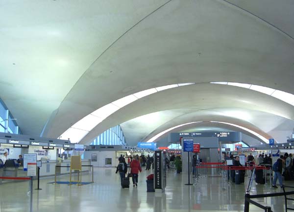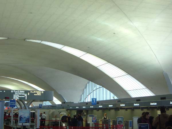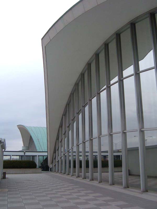 A fourth vault was added in 1965, as was the air traffic control tower (I.M. Pei). The building now sits at the center of a vast sprawl of concourse additions, many times its own length.
