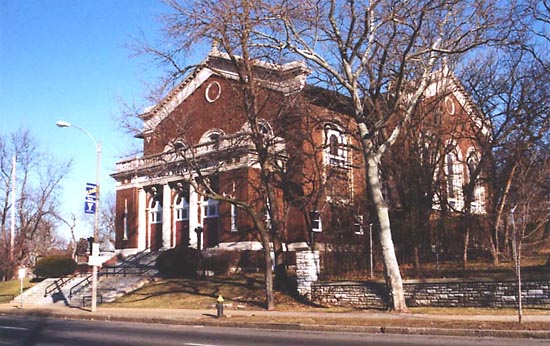 center: Across the street is the Solomon's Temple church on the former Principia College campus. Both images from January 2003.