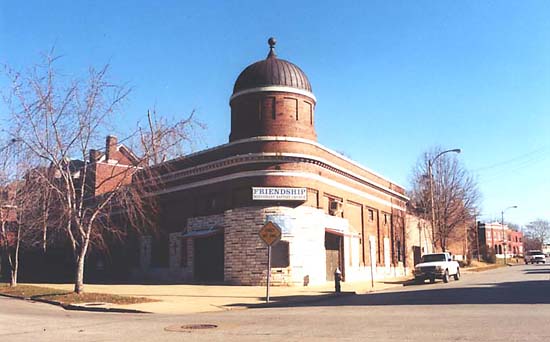 Center: a corner building with a colorful history; it was a Jewish synagogue before World War II, then a movie theater, the Plaza. More recently it has been re-converted into a church.