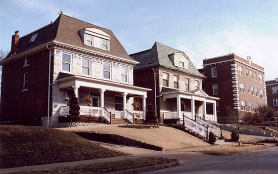 Bottom: a neat row of houses just south of Page on Montclair. A single board-up stands in the middle of the block.