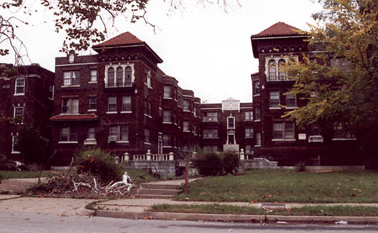 As for the street that the area is known for, it has been largely redeveloped, such as the 5500 block, where suburban-style ranch houses have been dropped into the cityscape. However, many older buildings still stand, and some of them -- like this massive apartment block in the 5800 block -- are still in use.