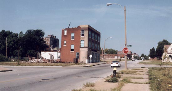 At the intersection of Olive and Boyle stood the fragmented remains of a legend: Gaslight Square.
