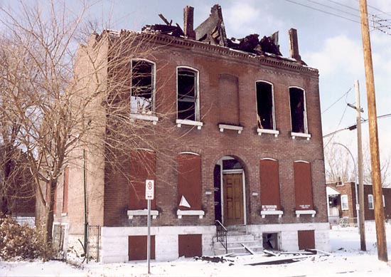 Top: A burn-out at the corner of 19th and Angelrodt. Demolished. January 1999.