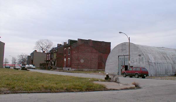 December 2002: The 13th Street house from the previous page is visible at lower-right. The bulging-facade house is at left.