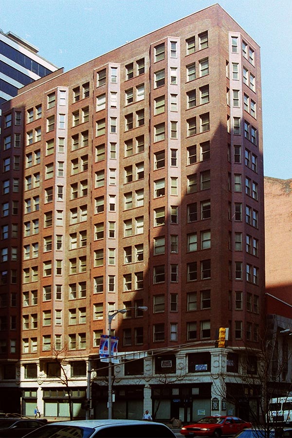 The LaSalle is one of the simplest old buildings downtown -- and one of the most handsome. With its thin profile, unadorned bay windows and simply decorated base, it seems a distant cousin of Chicago's landmark Monadonok Building -- though this appearance is a result of a 1939 stripping of much of the building's original decorative terra cotta.