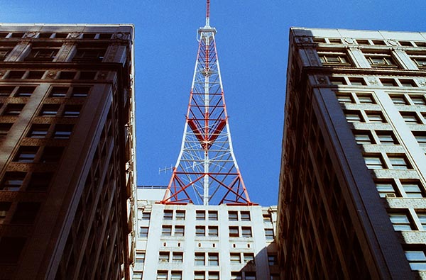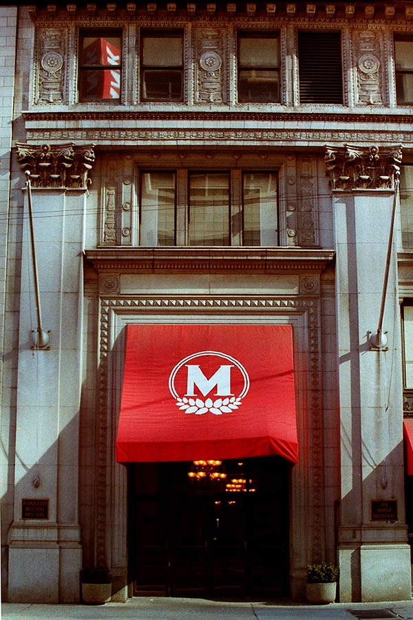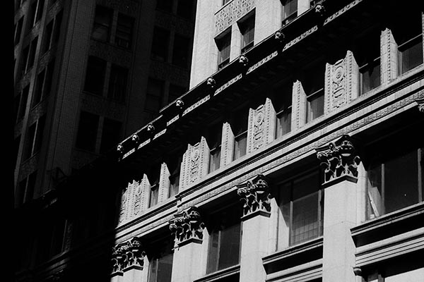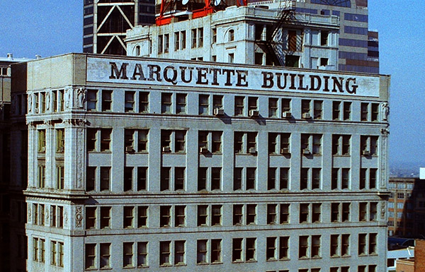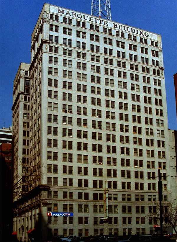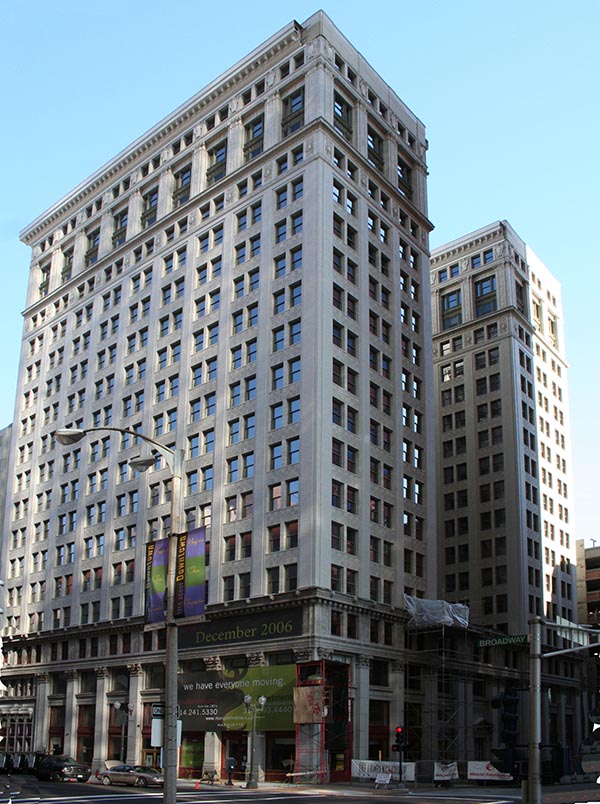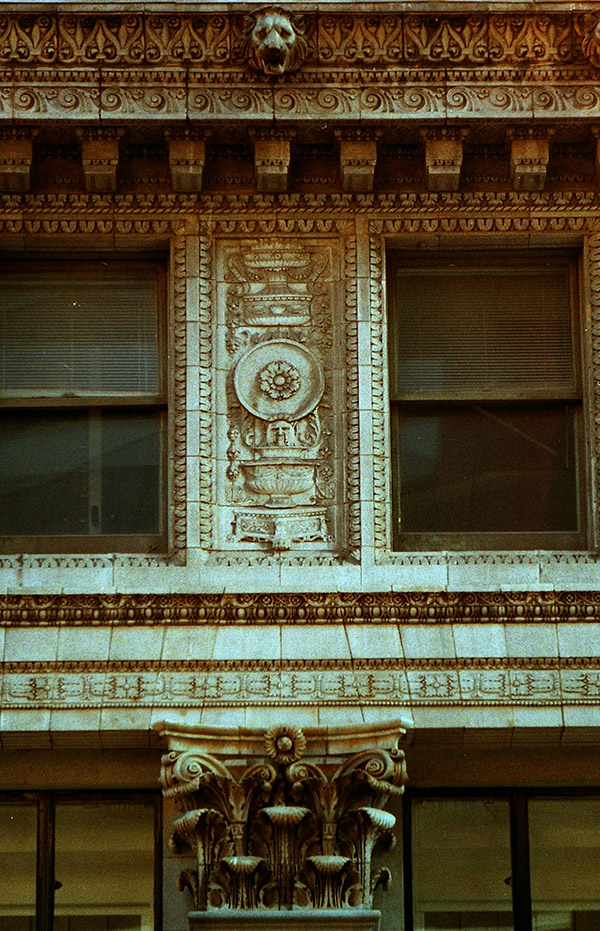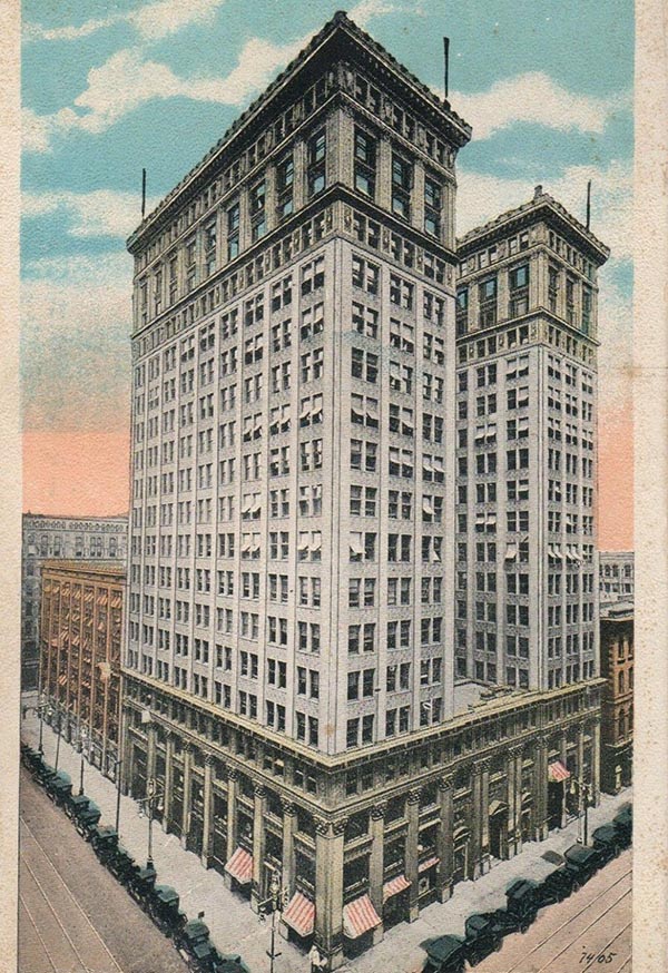 Simplified Chicago style with restrained Beaux-Arts ornament. A communications mast surmounting the penthouse was one of the highest structures in the city until its removal in 2006.