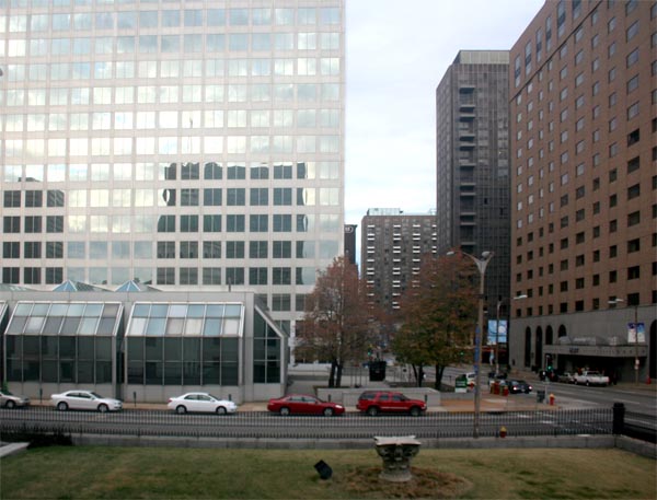 Approximately the same view in 2008, with the former Boatmen's Bank Tower filling the old Planters site, and then some.