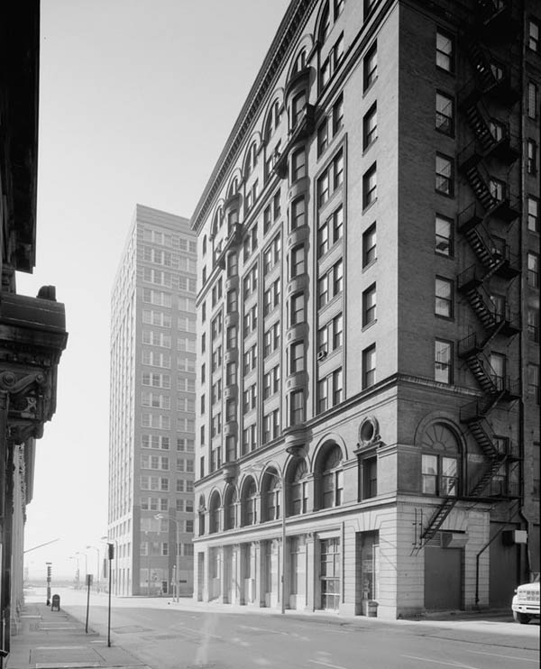 The building's north facade, with the Pierce Building beyond. HABS photo.