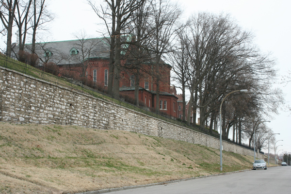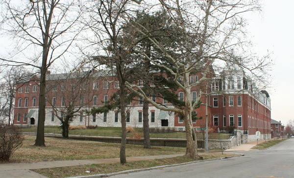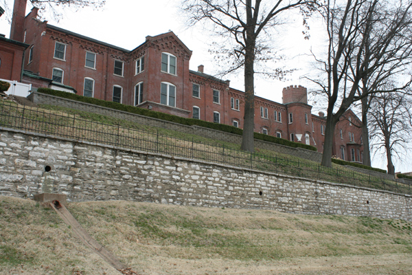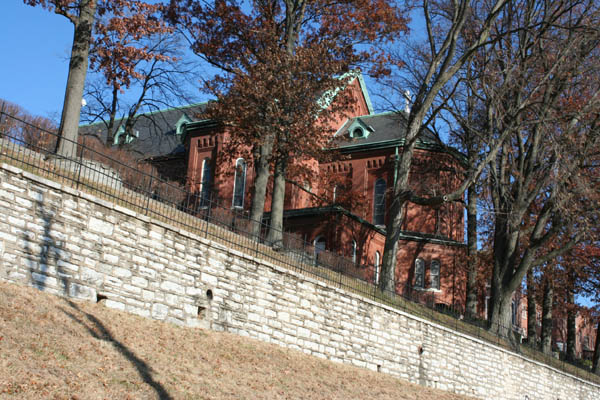 The Sisters of St. Joseoph of Carondelet occupy a dramatic complex of buildings on an equally dramatic blufftop site at Minnesota and Holly Hill. The Sisters began their mission in St. Louis in 1836, raising orphans and teaching the deaf. The complex of Gothic and Romanesque convent buildings began in 1840 and went up in stages through 1900.